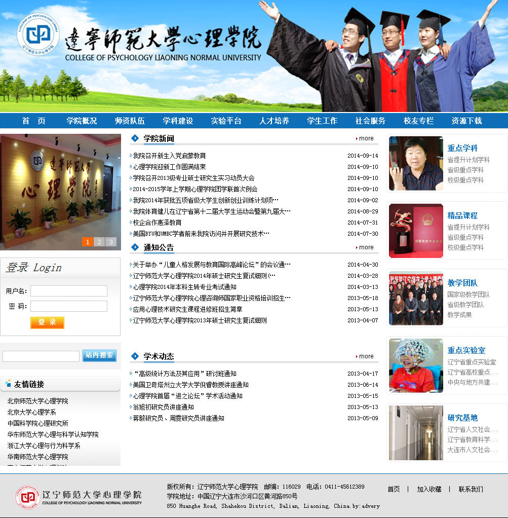 2011年獲批心理學一級學科博士學位授予權(quán);2012年正式成立遼寧師范大學心理學院。