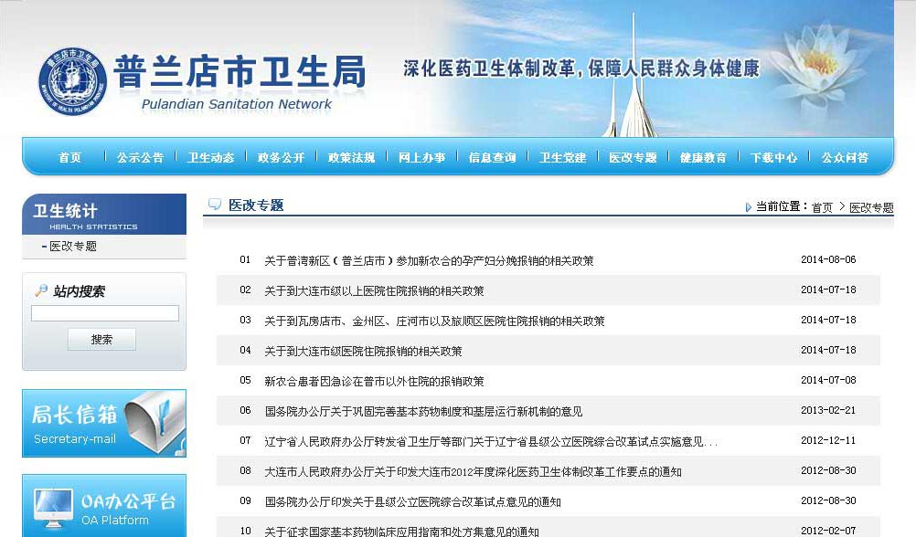 根據(jù)普蘭店市國民經(jīng)濟(jì)和社會(huì)發(fā)展總目標(biāo),“十二五”普蘭店市衛(wèi)生事業(yè)發(fā)展總目標(biāo)是:形成具有普灣新區(qū)特色、適應(yīng)(區(qū))市經(jīng)濟(jì)與社會(huì)發(fā)展和滿足人民健康需求的醫(yī)療預(yù)防保健服務(wù)、健康保障與衛(wèi)生監(jiān)督執(zhí)法的衛(wèi)生服務(wù)體系,使全市人民都能獲得與社會(huì)經(jīng)濟(jì)發(fā)展不同階段相適應(yīng)的衛(wèi)生保健服務(wù),滿足人們多層次、多樣化的健康需求,使普蘭店市居民健康主要指標(biāo)接近世界發(fā)達(dá)國家的平均水平。